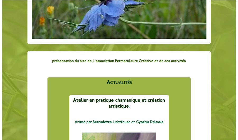 Portfolio Images illustrator, photoshop, canva Terre Etoiles (photoshop, illustrator) Le chemin de l’eau Voyage chamanique (canva) Voyage chamanique (canva) Voyage chamanique (canva) Sans titre (photoshop, illustrator) (photoshop, illustrator) Flyers, Affiches photoshop, illustrator, canva) logo de Kavalk’art Plan des Chézades Flyers Flyers Logo de la compagnie des mers du nord Flyers Flyers Flyers Logo Terre Etoiles Logo Terre Etoiles Flyers Logo RIAD Sites internet dreamweaver, photoshop, illustrator, canva